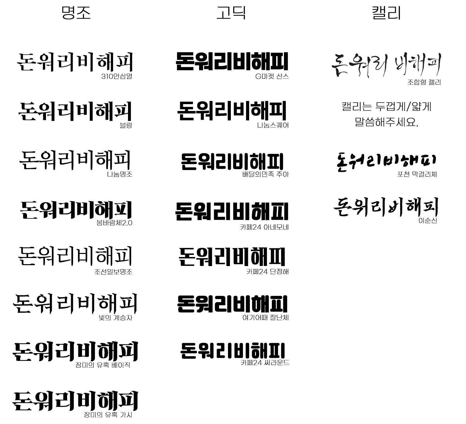 ③폰트 [안삼열(명조),나눔고딕(고딕) 등 지정 안해주셔도 OK,] (폰트 참고 아래 이미지) :